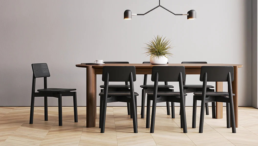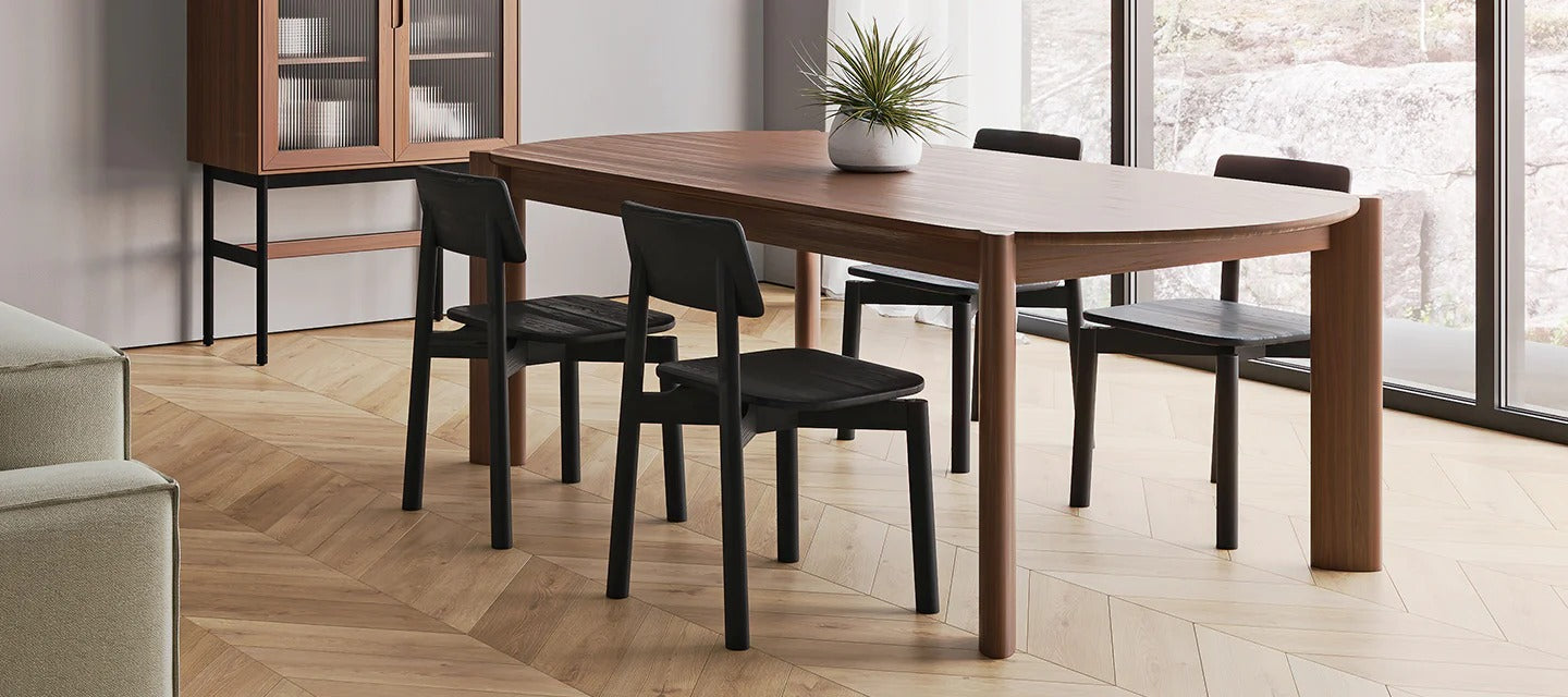 We ask a lot of our dining tables. They must be beautiful, purposeful, and—above all—worthy of the moments we share around them. The Bancroft Dining Table lives up to that tall order. Combining the best of modern and Scandinavian design, it’s void of any harsh lines, with subtly curved legs and a gentle oval top that strikes just the right style note. The classically proportioned design boasts room enough for eight, with a wide oak or walnut top perfect for laying out all manner of dinner delicacies. Solid wood construction—finished by hand with a beautiful matte stain—ensures that this heirloom-worthy piece will serve as a gathering place upon which you can create memories for years to come.