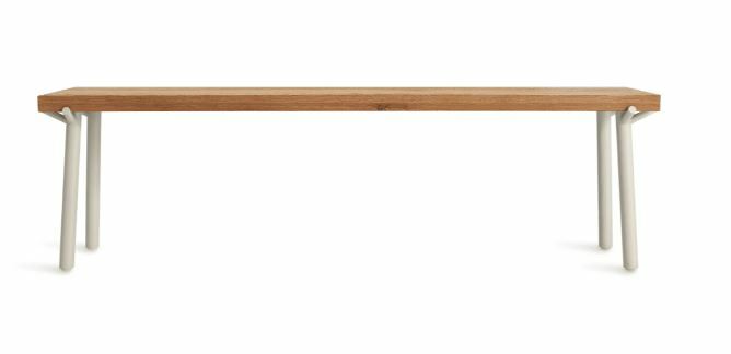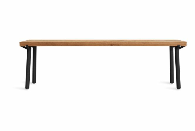 - Solid oak top with a wire-brushed finish that creates a textured, distressed surface to highlight its grain