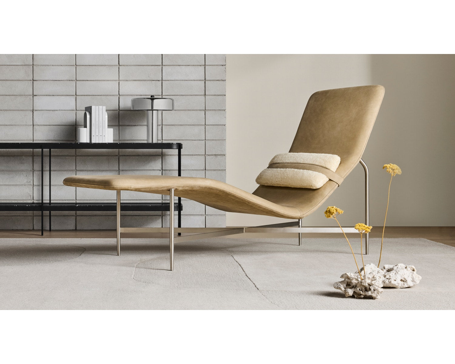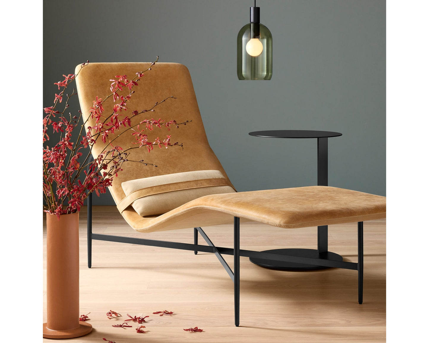 - Ink Leather: An aniline leather with a soft matte finish and velvety feel; Variation in the natural leather becomes more beautiful with use; Leather seat with coordinating ink velvet chair back