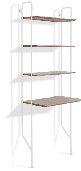 - Choice of veneer over wood shelves (walnut, white oak, smoke on ash) or lacquered wood shelves (white, black or slate)