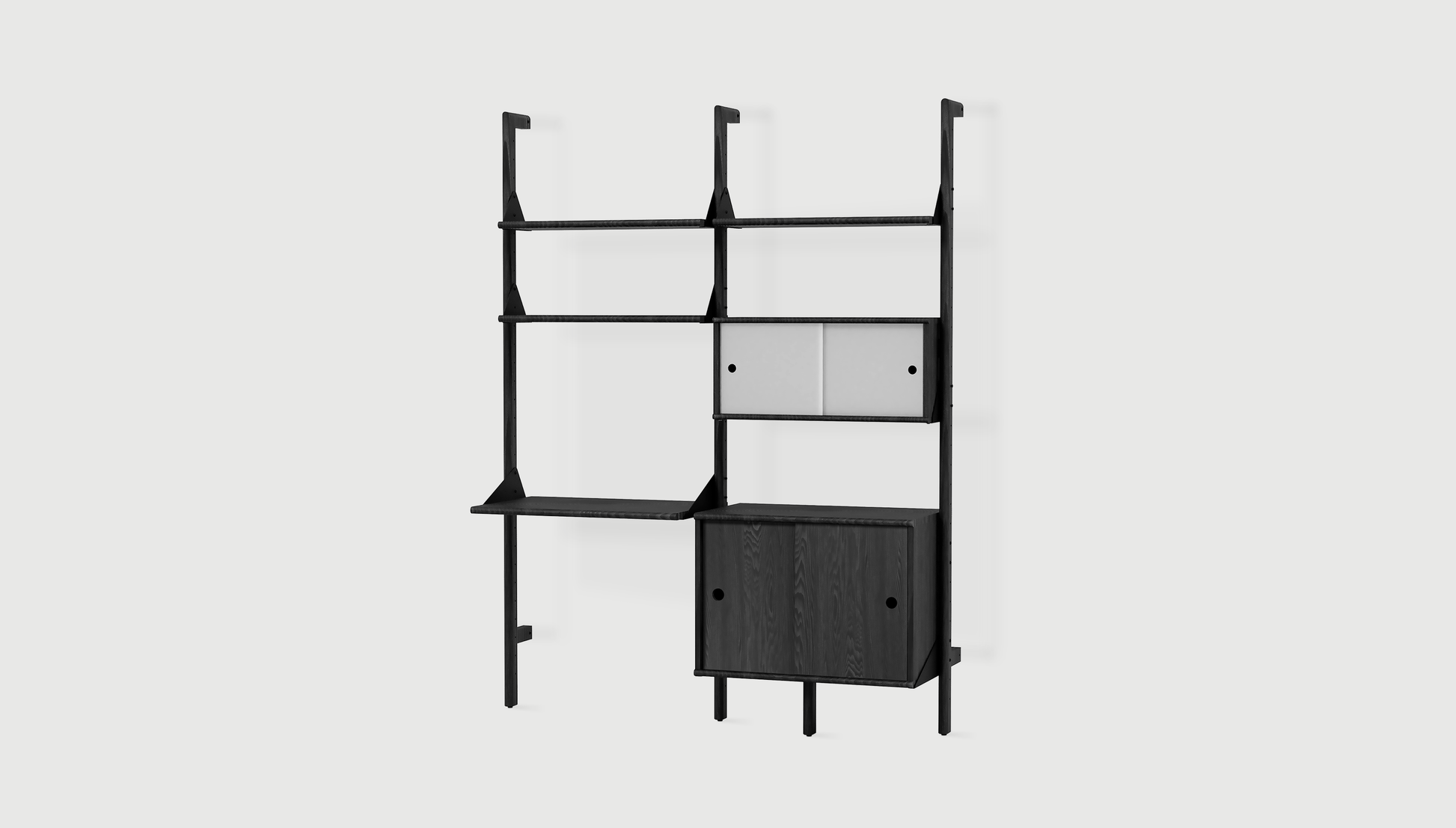 - Desk module is comprised of 2 shelves and 1 desk shelf.