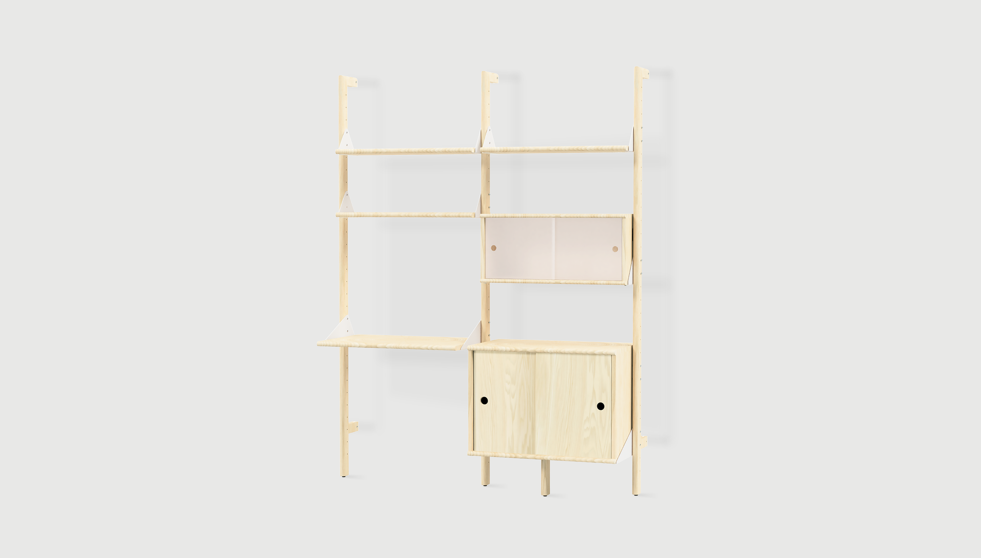 - Uprights, and the bullnose edge detail on shelves, desks and cabinets are solid, FSC®-Certified Ash.