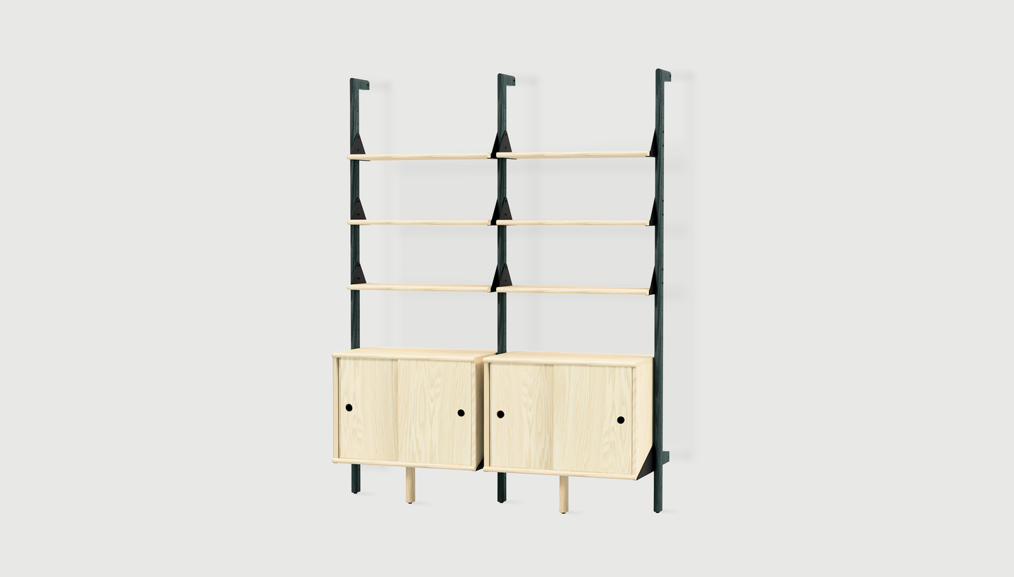 - Desk module is comprised of 2 shelves and 1 desk shelf.