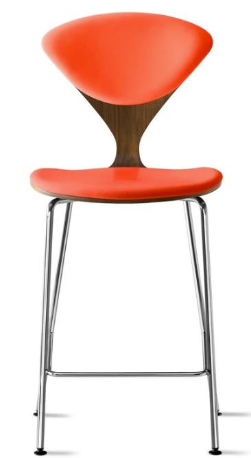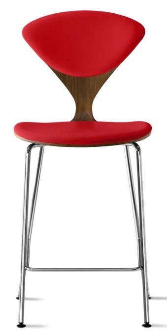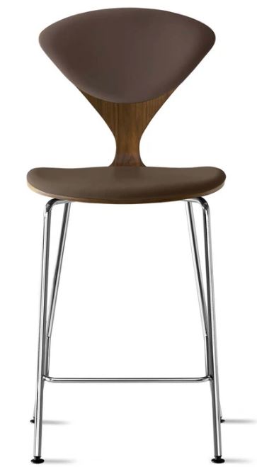 CHERNER Metal Base Stool- Classic Walnut w/ Seat & Back Pad