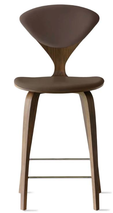CHERNER Wood Base Stool- Classic Walnut w/ Seat & Back Pad