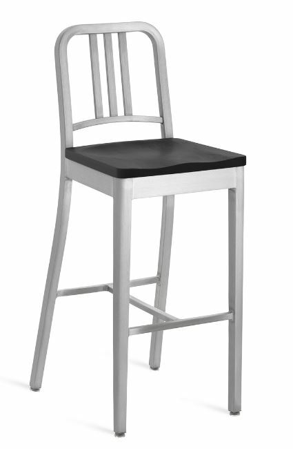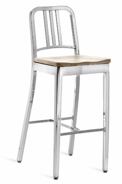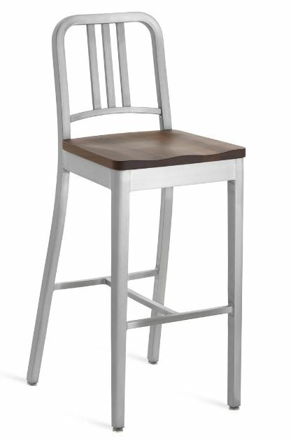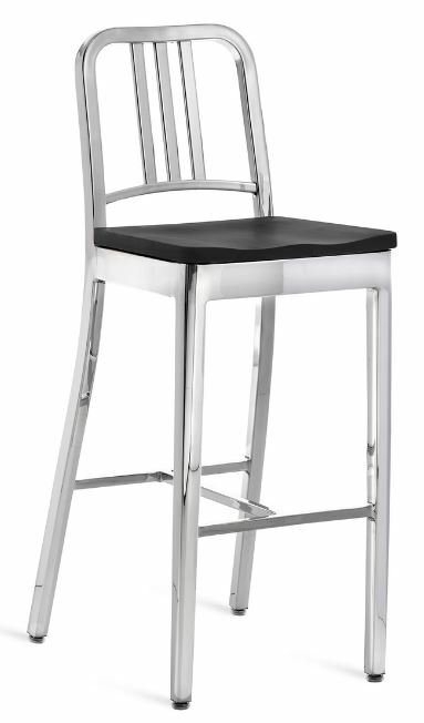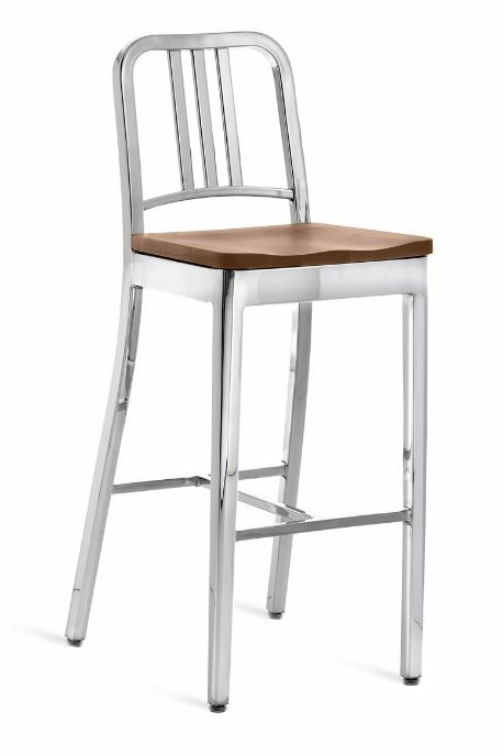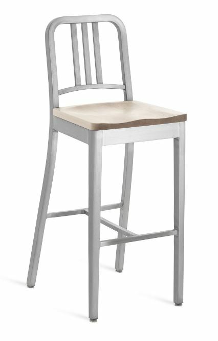 EMECO 1104 Navy Barstool w/ Wood Seat- Brushed