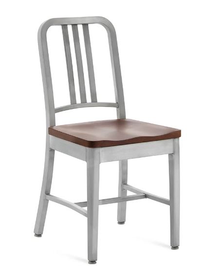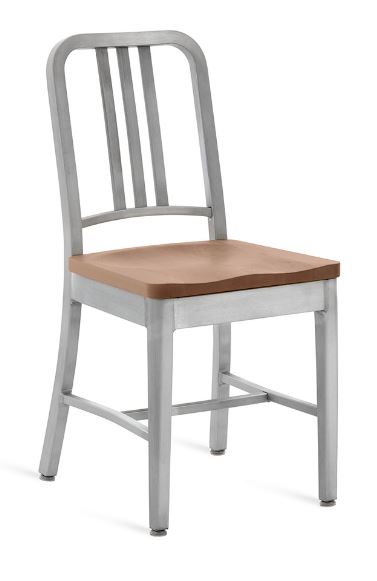 EMECO 1104 Navy Chair w/ Wood Seat- Brushed