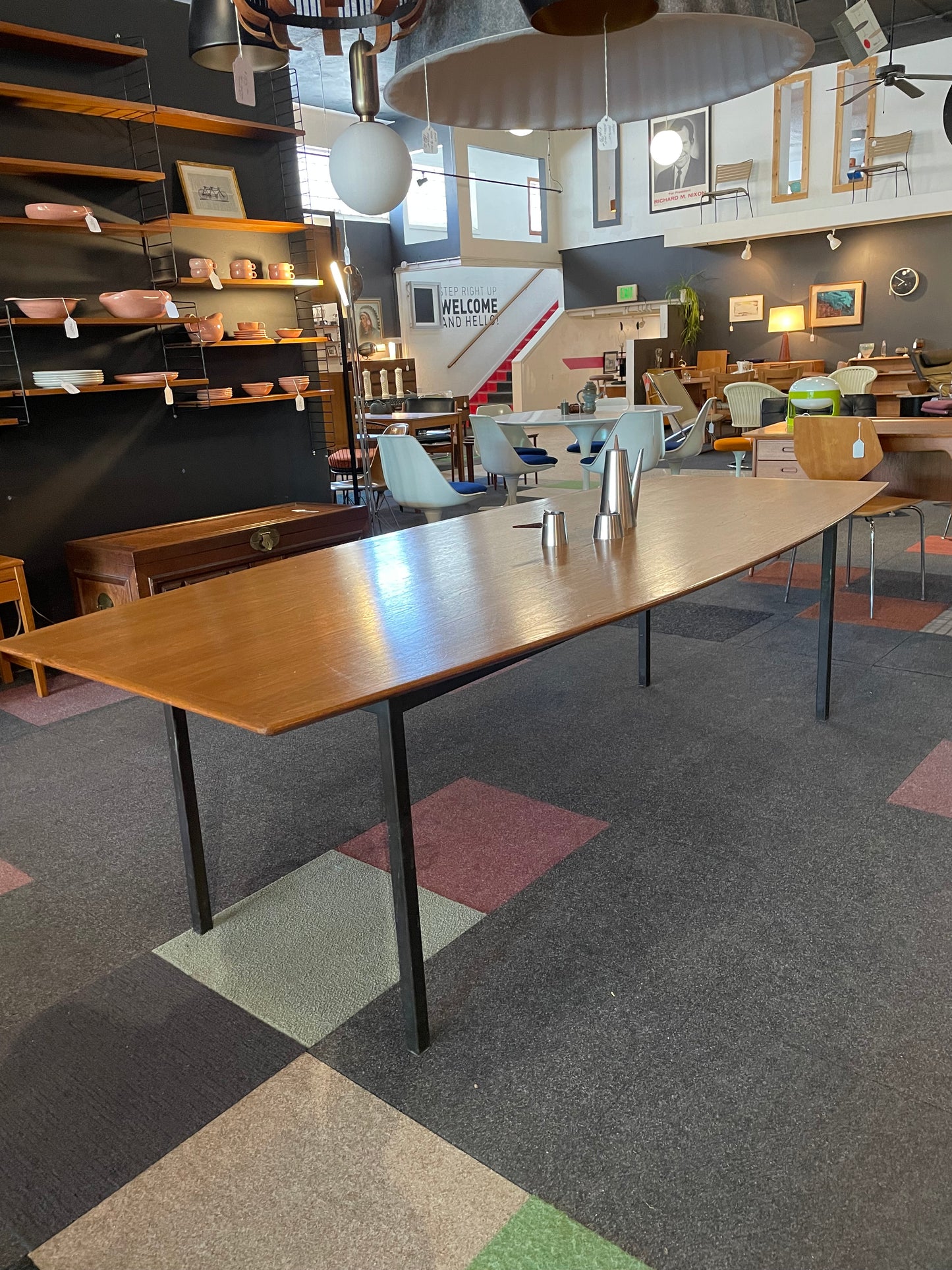 Florence Knoll Walnut & Chrome Boat Table / Desk.