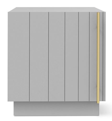 - Features a soft-close door with a brass-plated handle and adjustable hinge hardware.