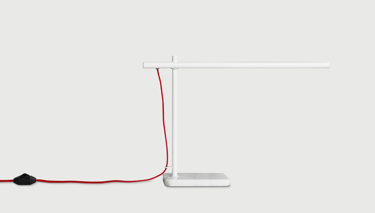 - Red fabric electrical cord with a dial dimmer switch allows for precise control of lamp brightness.