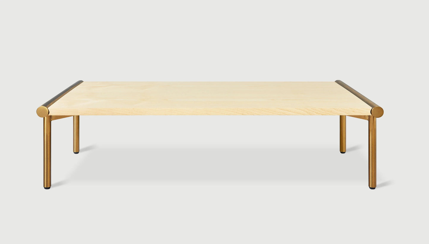 Bauhaus industrial design gets a contemporary update with the Manifold collection. Featuring elegant, clean-lined tables that can stand alone or nest together, the well-considered silhouettes optimize space with innovative design compatibility. Designed to complement larger sofas in living or office spaces, the rectangular coffee table features a low profile and a long wood tabletop. While it provides ample space to spread out, the slender metal legs contribute to an overall light, sleek aesthetic. Available in two combinations—Blonde Ash with Brass or Walnut with Pewter – each with the promise to elevate your space.