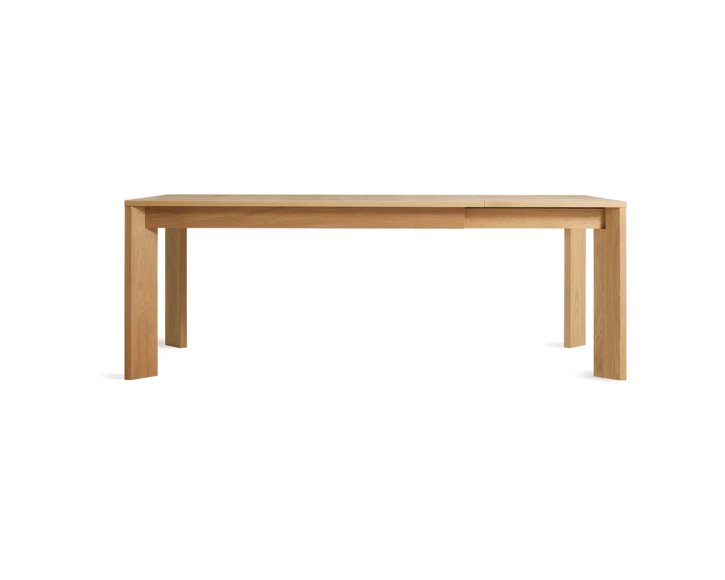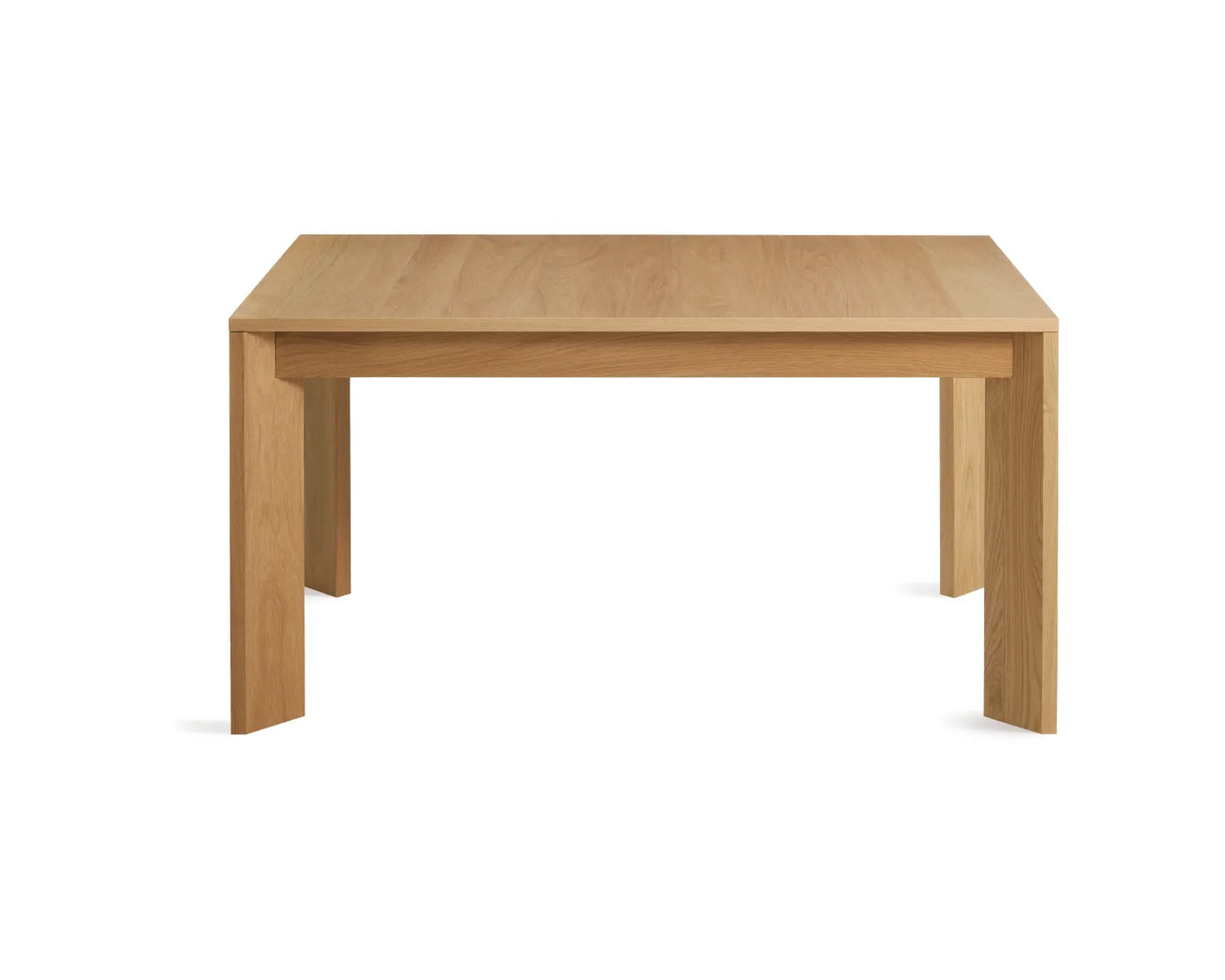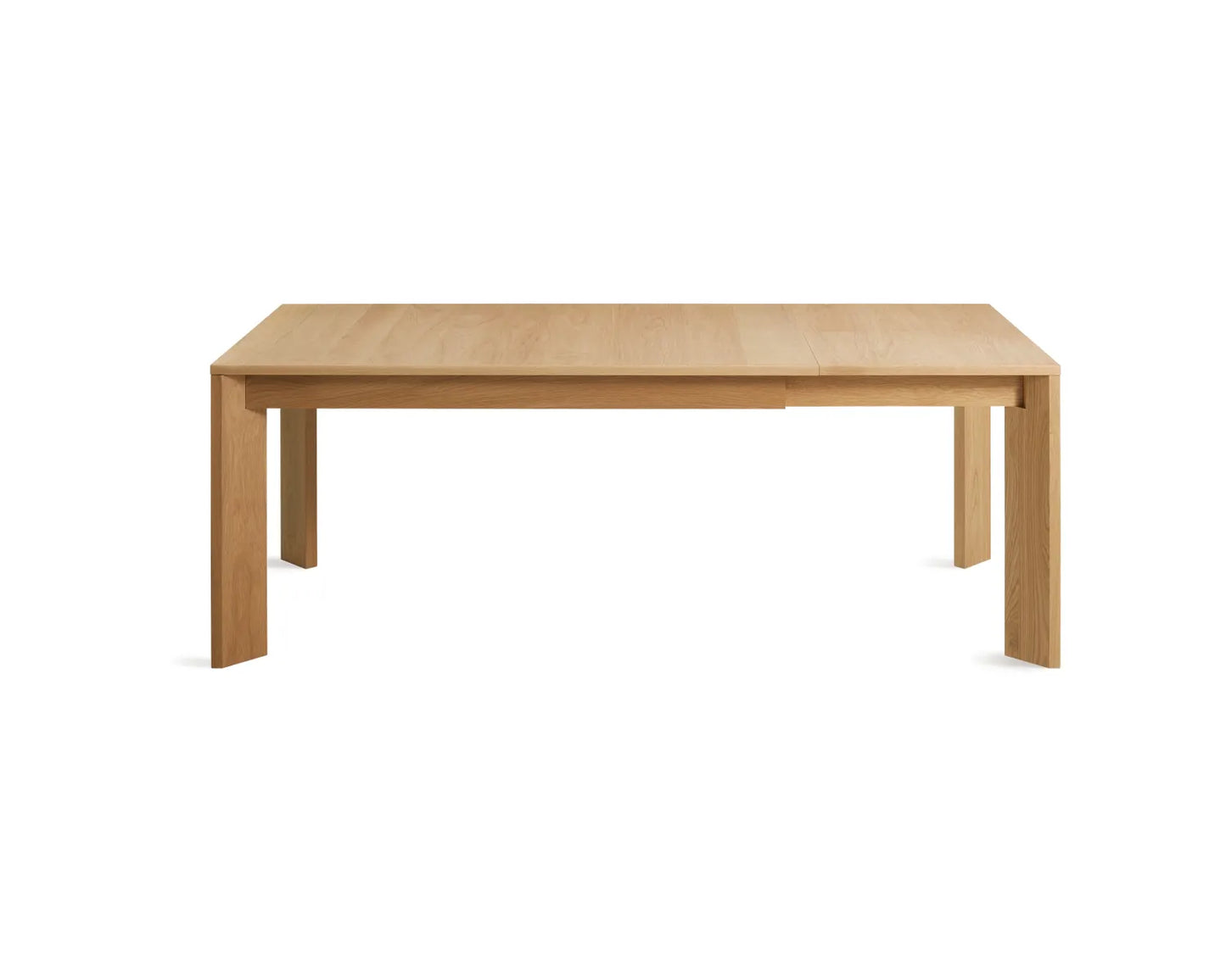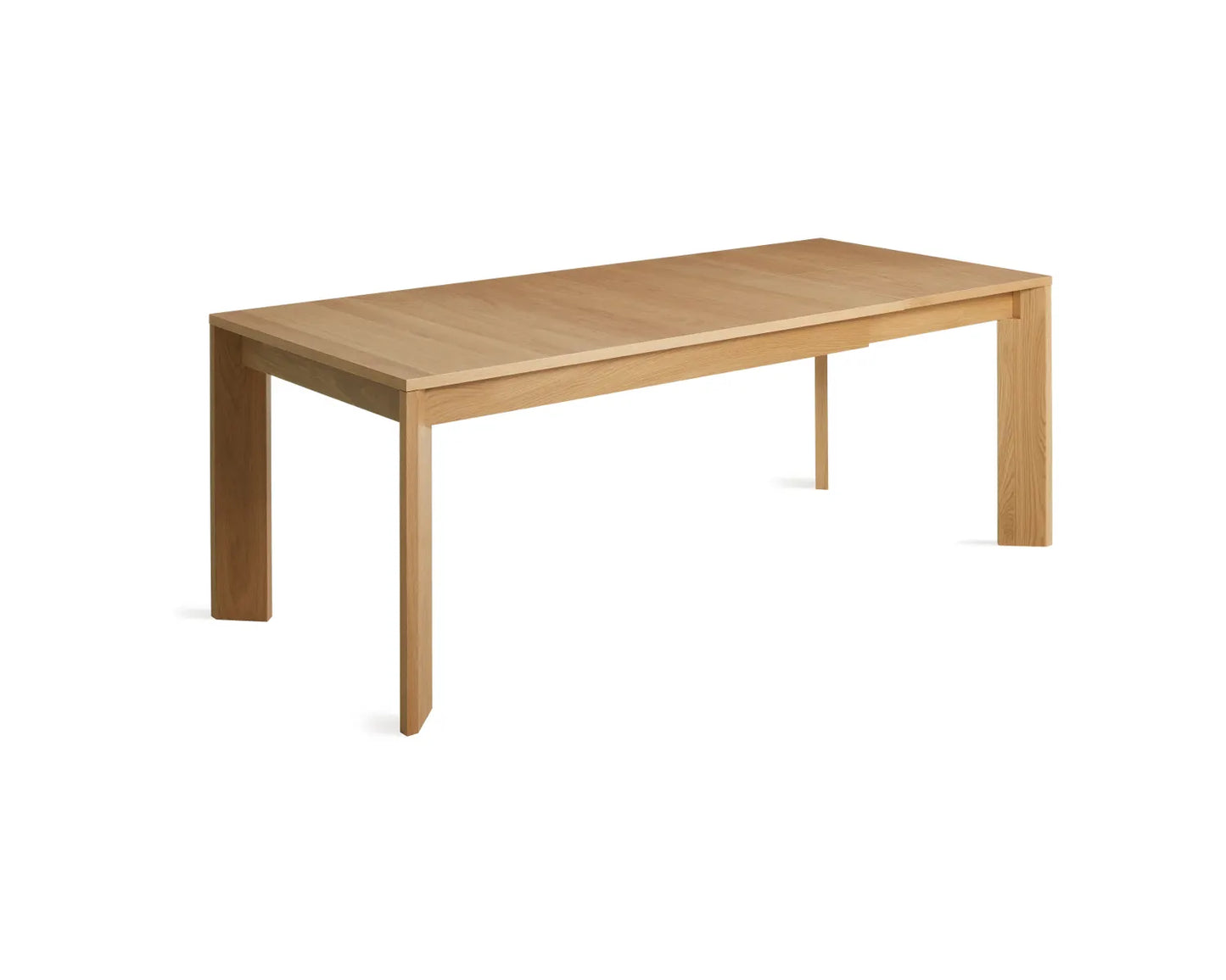 A gorgeous swath of wood pulls off the ultimate party trick. A hidden leaf butterflies out to wow your guests and eliminate the need for extra storage space. Wood grain runs the short way, acting as an alluring and sneaky disguise for the seam. Chunky angled legs keep the silhouette looking sharp and timeless.