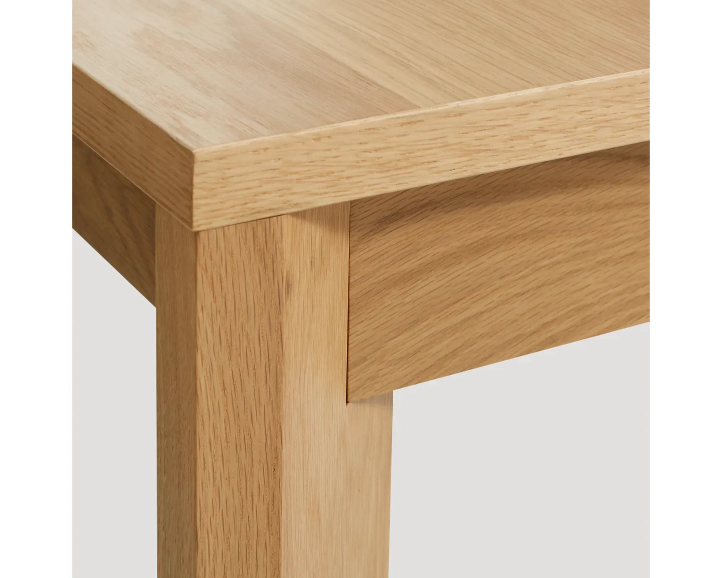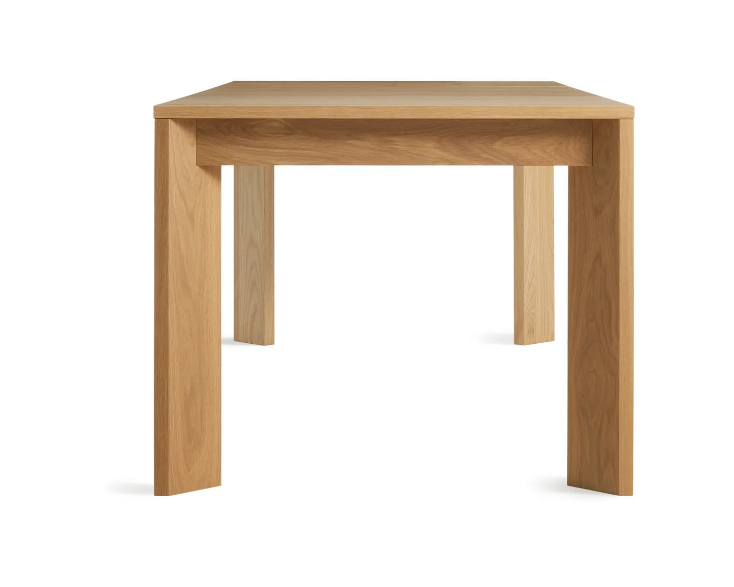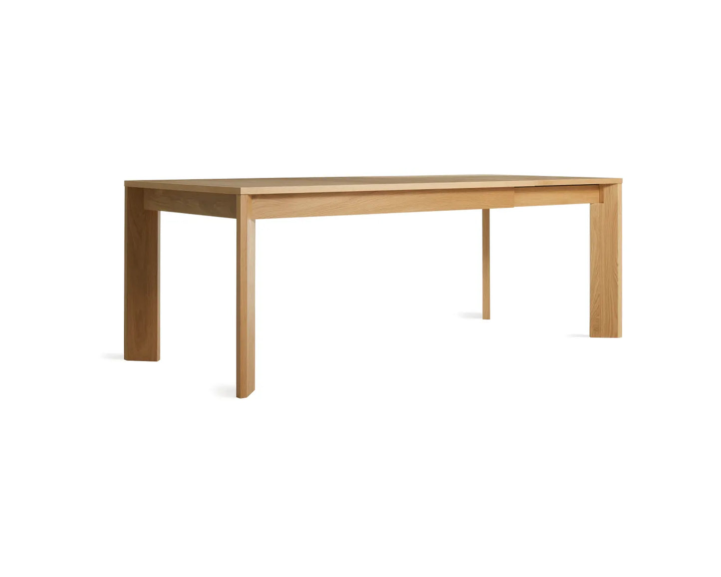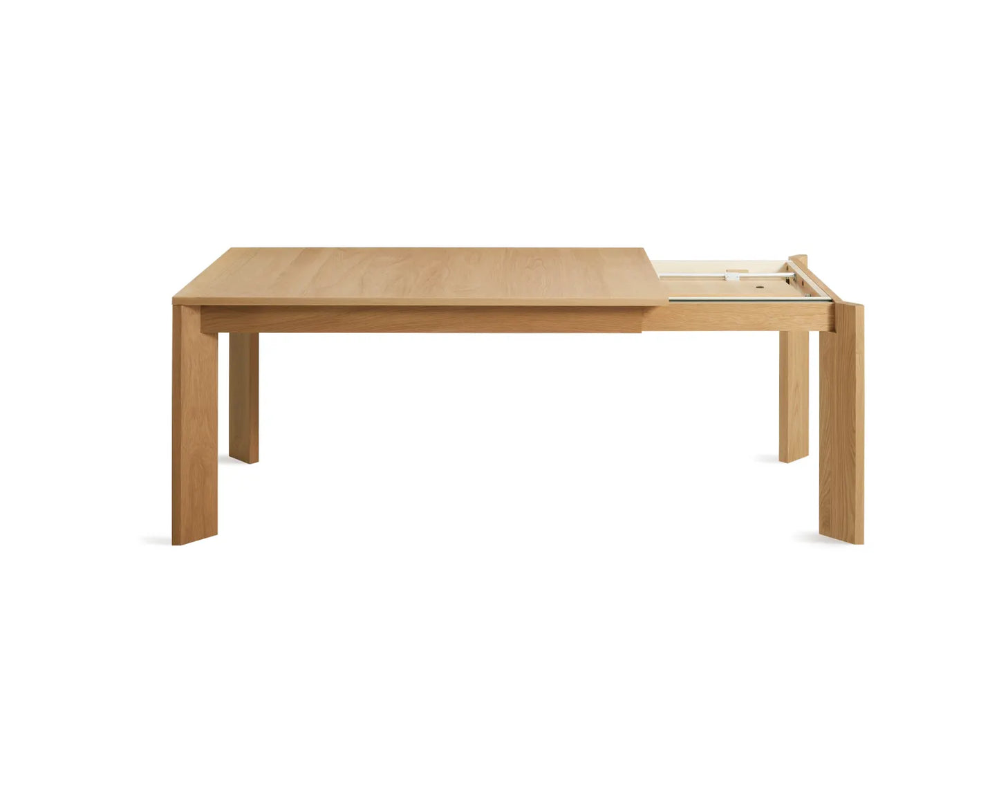 A gorgeous swath of wood pulls off the ultimate party trick. A hidden leaf butterflies out to wow your guests and eliminate the need for extra storage space. Wood grain runs the short way, acting as an alluring and sneaky disguise for the seam. Chunky angled legs keep the silhouette looking sharp and timeless.