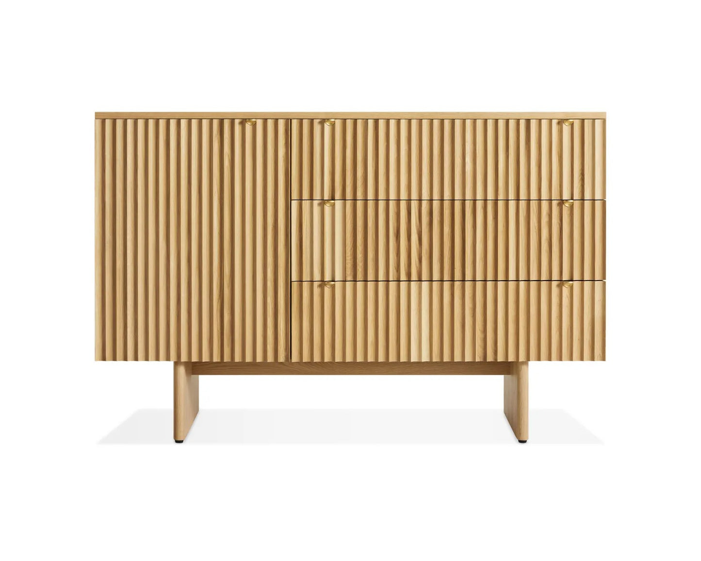 Murmur puts refined elegance front and center. Fluted wood creates a continuous pattern of textural delight. Small sandcast brass pulls nest in the grooves for subtle sophistication. Convex legs and soft-close drawers complete the pretty picture. Available in a whole slew of equally stunning shapes and sizes.